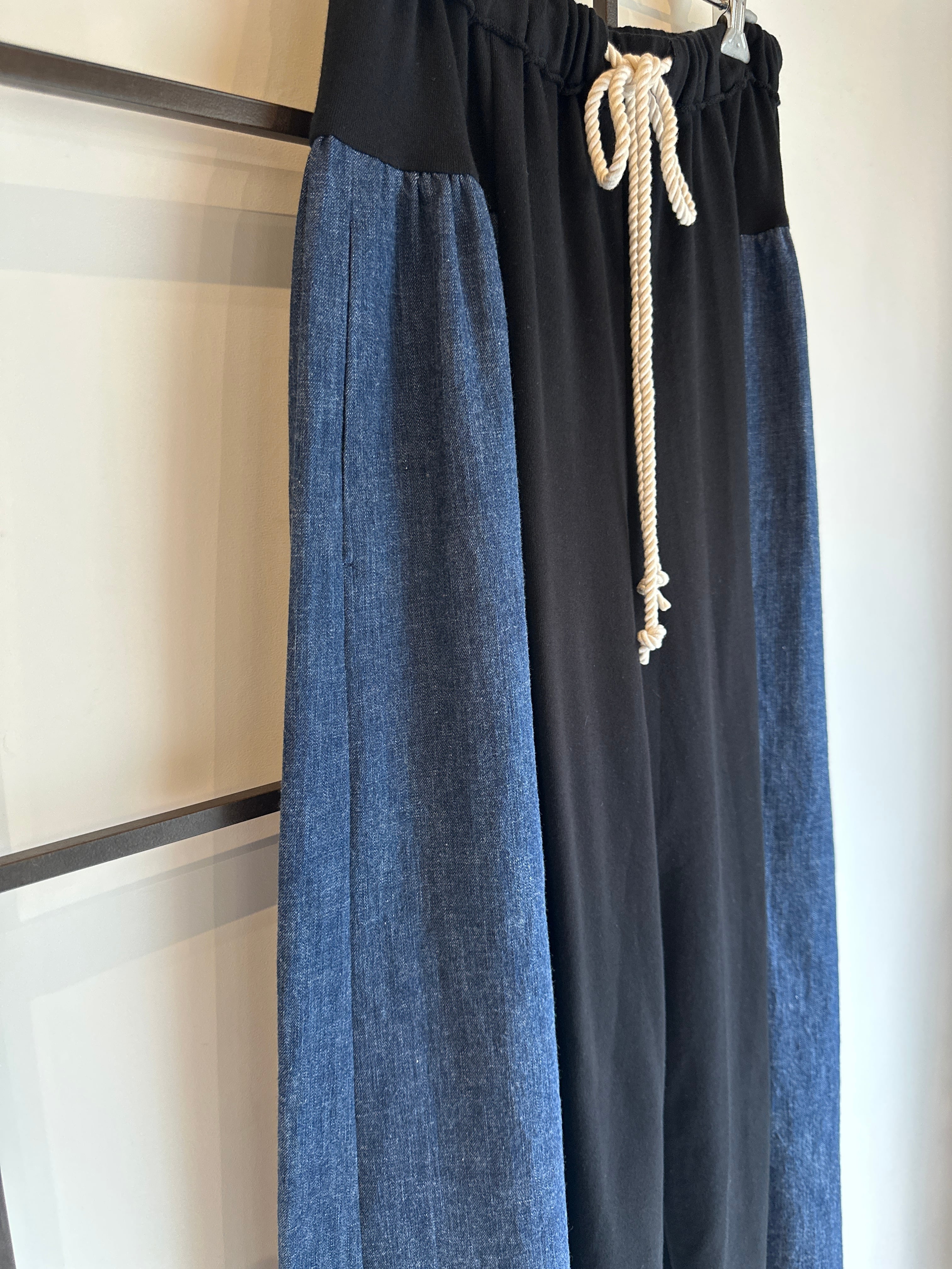 denim x sweat wide pants